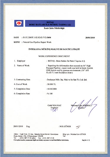 İntekaysa Mühendislik İnşaat Makine ve Isı Sanayi Ltd. Şti.