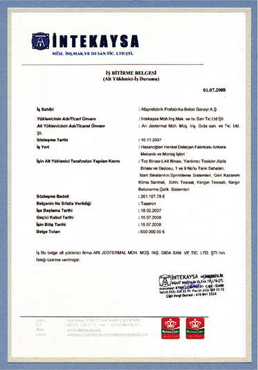 İntekaysa Mühendislik İnşaat Makine ve Isı Sanayi Ltd. Şti.